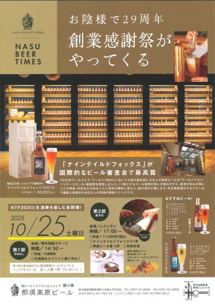 ※ 第一部の参加者の方に那須高原ビールオリジナル ノンアルコール お一人様1杯プレゼント