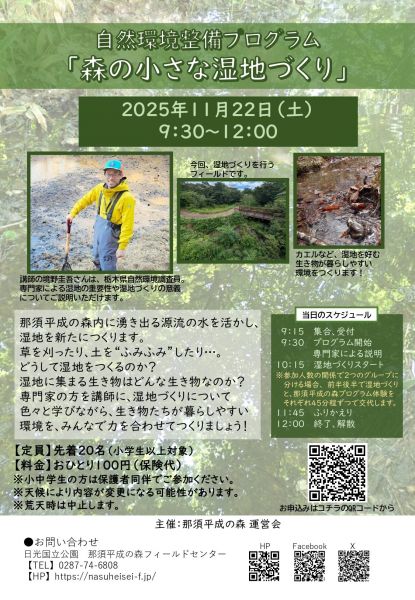 那須平成の森内に湧き出る源流の水を活かし、湿地を新たにつくります。