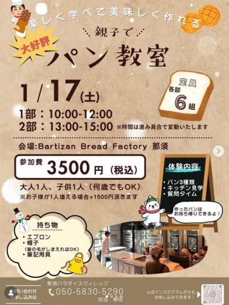 内 容 : パン3種類 / キッチン見学 / 質問タイム