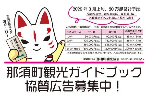 那須町観光ガイドブック2026~2027年度版 広告掲載ご協賛のお願い